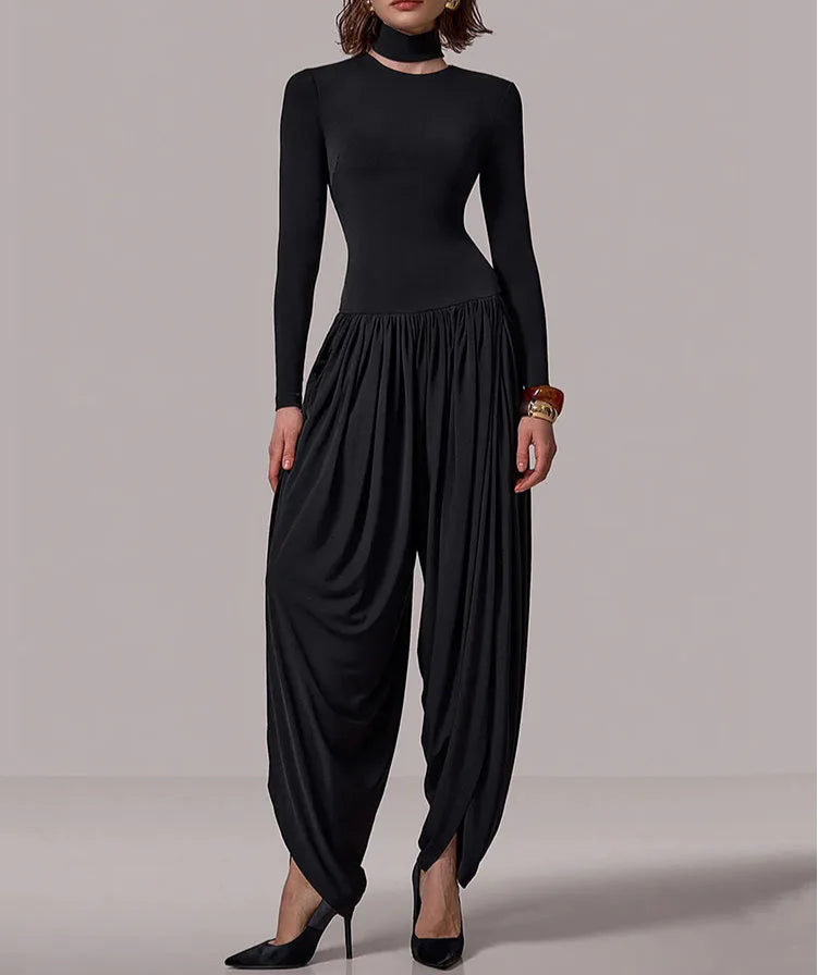 Walk In Authority Draped Leg High Neck Jumpsuit